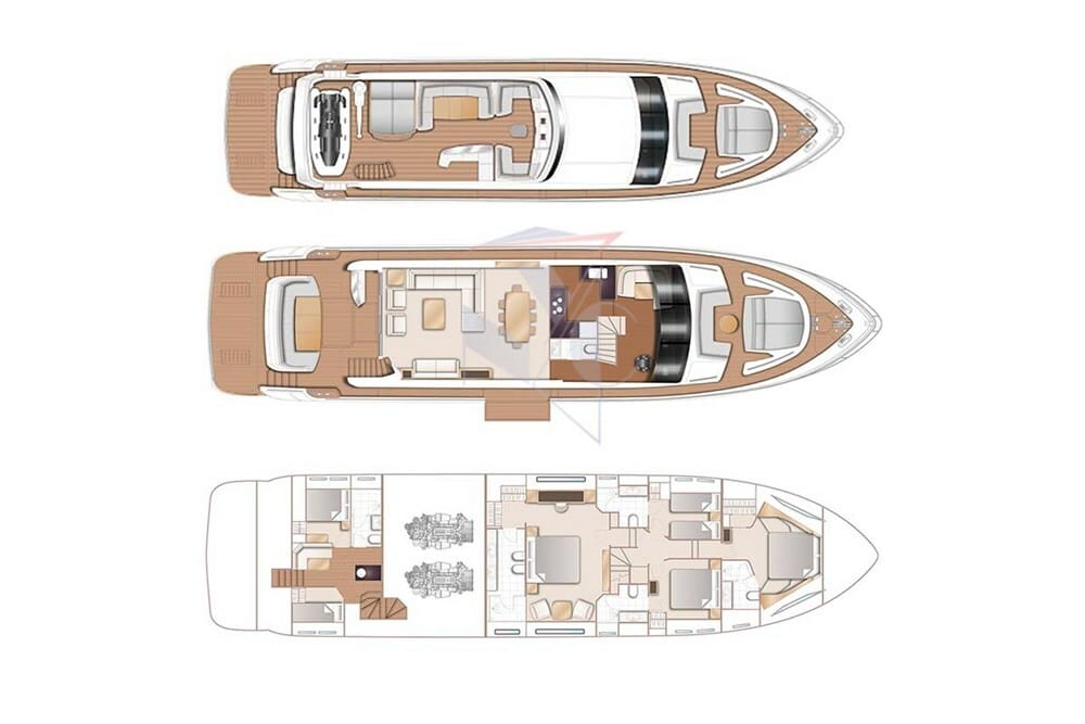 Outdoor living spaces were also inspired by the Princess 40M, featuring a spacious flybridge, spa pool, and alfresco amenities. The yacht's engineering ensures efficient crew accommodation without disrupting owner and guest spaces. Powered by two 1,825-hp Caterpillar C32 A engines, the Princess 88 achieves a maximum speed of 27-28 knots.