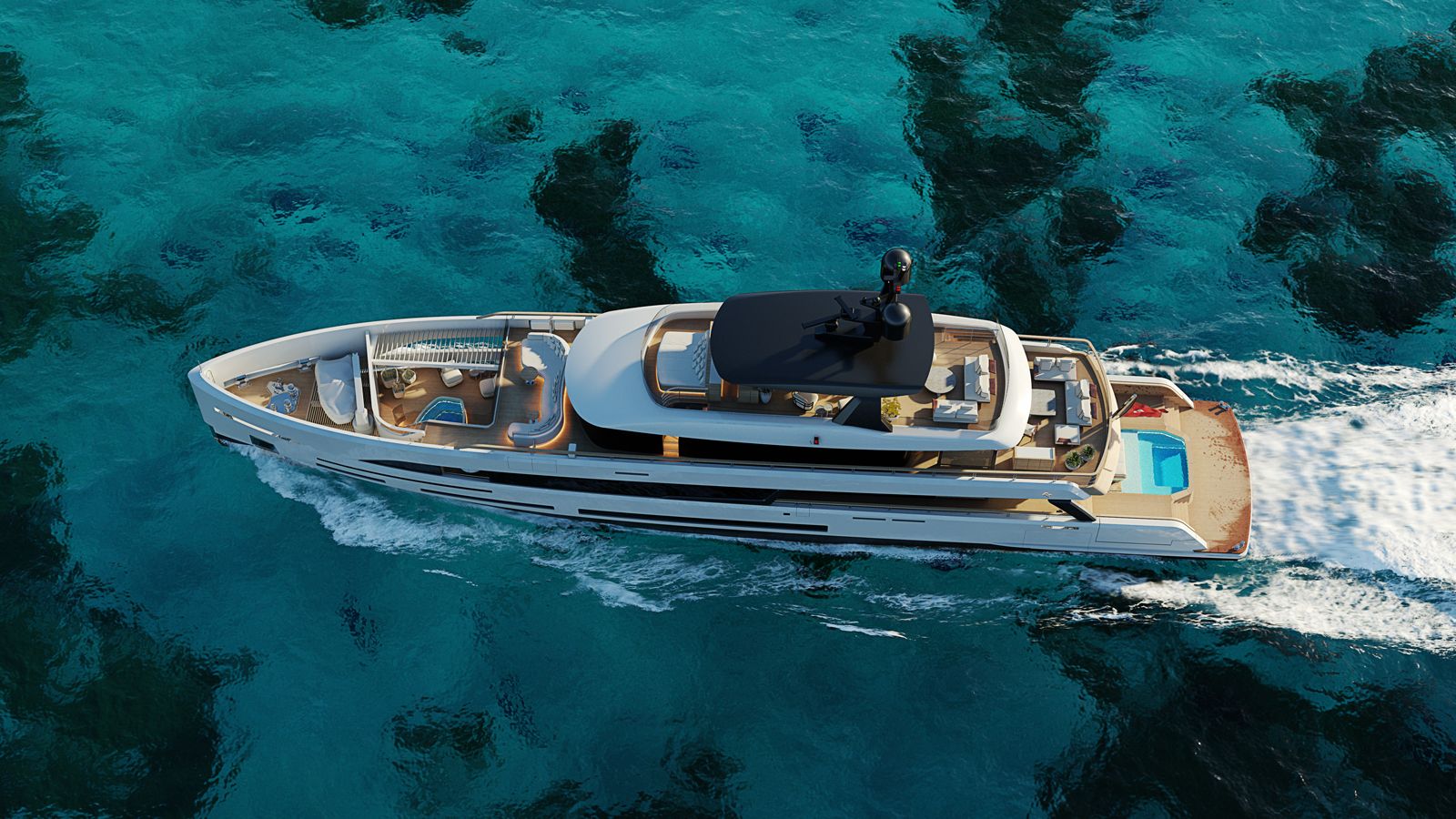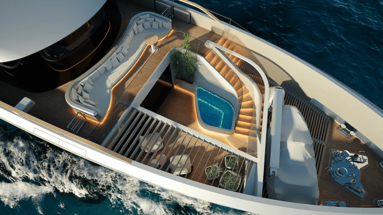Sirena's design philosophy merges traditional Latin architectural concepts with modern luxury, creating less formal, more social spaces to appeal to a younger demographic. This concept, offering a private, nature-infused space at sea, stands as a testament to this innovative approach and a unique feature in the world of superyacht design.